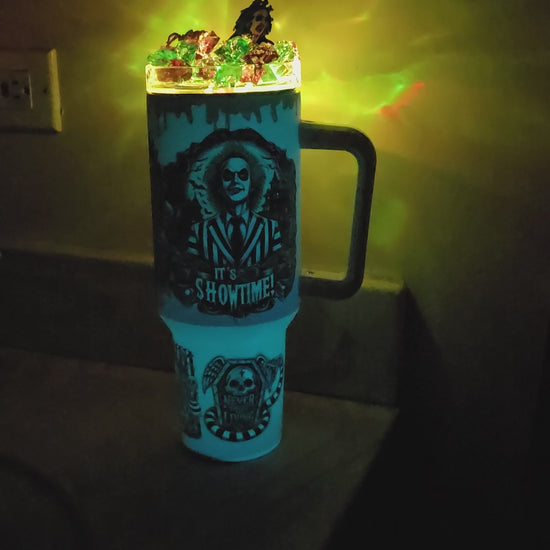 This is a 40 oz sublimated glow in the dark light up ice tumbler.